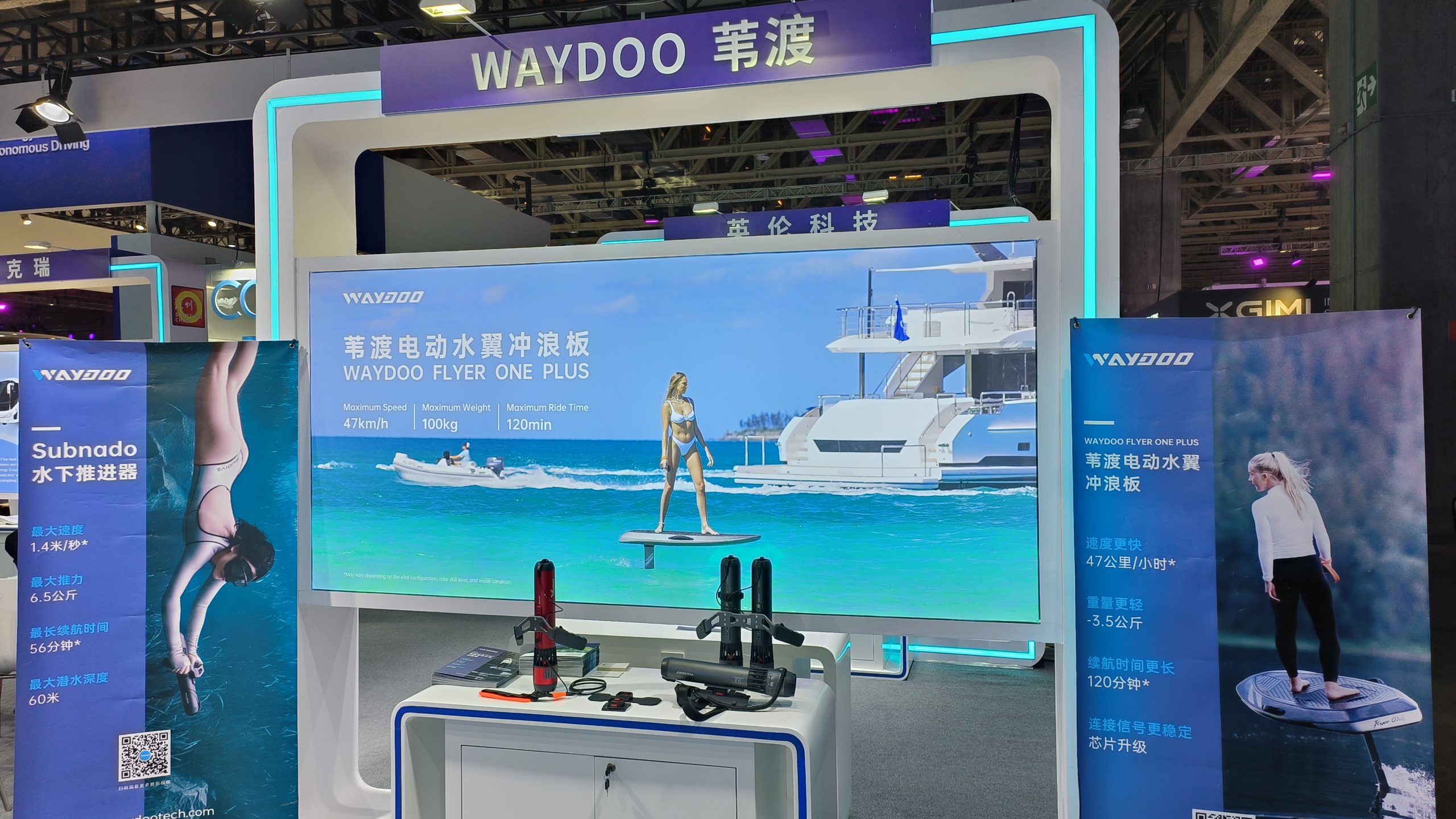Waydoo Flyer 的造型相对比较简单,它以一块冲浪板为根底,在上面整合了由电池、电机、驱动器、螺旋桨和水翼组成的动力总成结构,透过‘伯努利原理’,结构发生的推力能够将玩家稳定在水面上,并成为冲浪板行进的动力。有两款类型,一款板体原料为EPP,密度高,刚性更强,下降受伤危险;另一款为碳纤维原料,外观更为大气有目共睹,合适高速巡航和扮演技巧和动作。Flyer one plus最长续航时刻长达2小时,最高时速40km/h,全体分量比一代轻了3.5kg,但板体刚性增加了60%,板体安如磐石,冲浪新手更易于操作。电动水翼冲浪板的配件(冲浪板、桅杆、螺旋桨)均可自主调配,依据个人冲浪需求,组合归于自己的冲浪板。